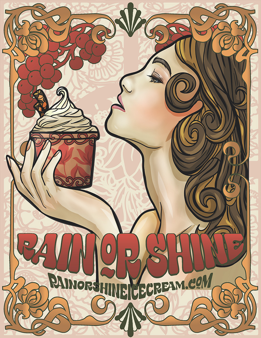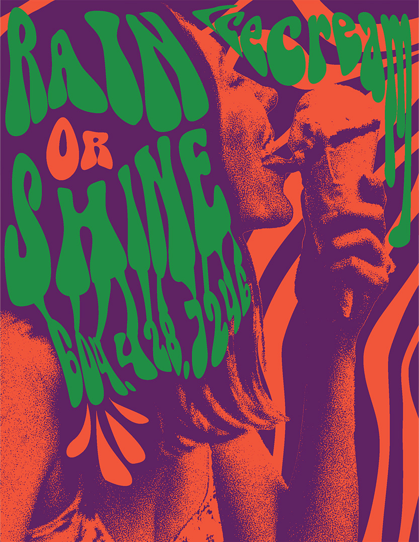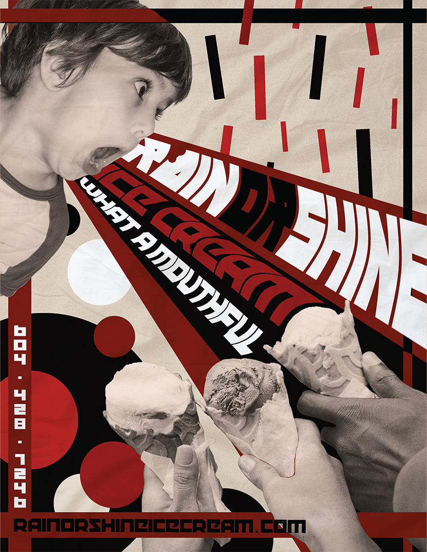 This project is a creative exploration of visual styles through a series of posters designed for Rain or Shine, a beloved local ice cream store.
