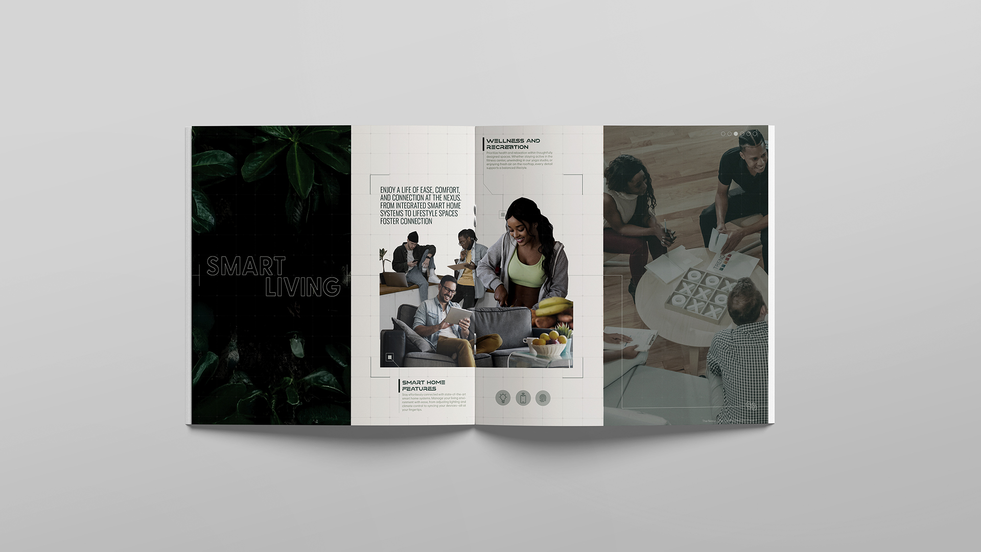 The intertwined lines in the logo symbolize connection and integration, reflecting The Nexus’s concept of “Intelligent Connected Living.” The geometric, modern design emphasizes seamless technology and high-tech living, showcasing how smart systems work together within the condominium. The logo’s shape conveys innovation, cohesion, and the forward-thinking nature of the brand.